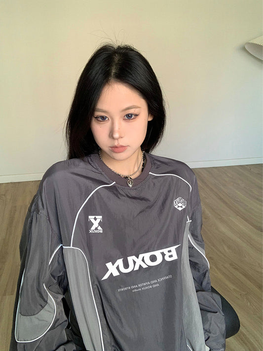 Men's Harajuku Hip Hop Half Zipper Pullover Windbreaker Track Jacket
